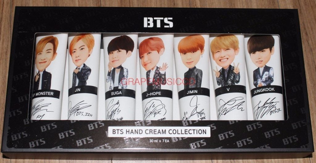 Entendemos que a cultura de skincare na Coreia é bem forte e que realmente manter a pele hidratada faz bem. Então talvez seja até uma conclusão natural termos produtos de beleza temáticos de artistas coreanos. Neste caso, existe uma caixa com hidratantes com rosto e assinatura dos integrantes do BTS.