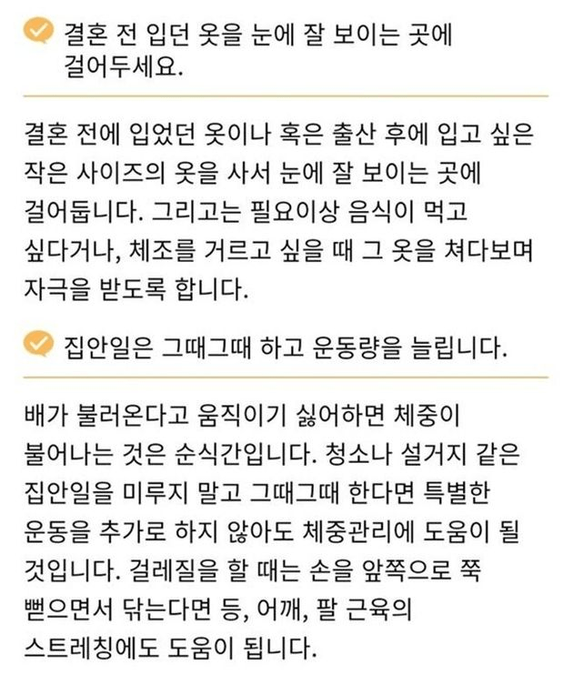 puerpério. O site fala que a mulher não deve deixar de executar tarefas domésticas como limpar a casa, lavar as roupas e louça, para assim, poder manter o corpo magro. Caso a mulher não esteja com vontade de se exercitar, deve pendurar roupas em tamanhos menores que o seu próprio no varal, para que isso estimule sua vontade de emagrecer.