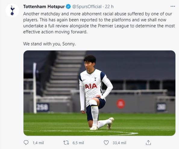 No último domingo (11), o Tottenham Hotspur Football Club denunciou insultos racistas sofridos por Son Heung Min após a derrota do seu time para o Manchester United.