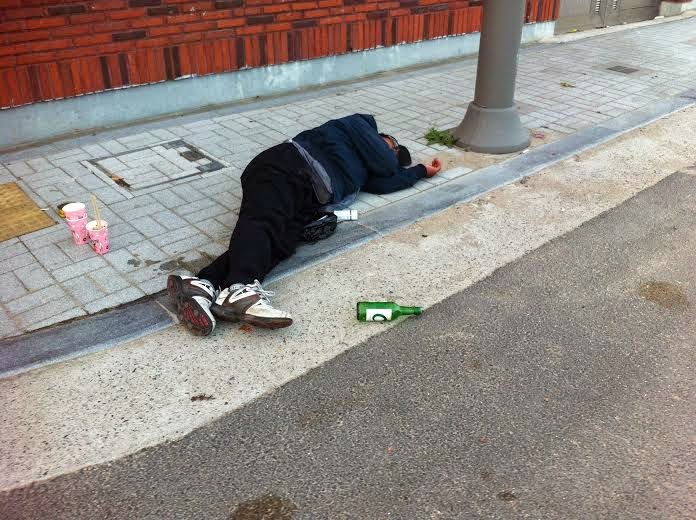 Ao andar por Gangnam, Hongdae ou Itaewon é comum ver jovens e velhos andando completamente bêbados pelas ruas. Se passar por lá em um domingo de manhã, terá o desprazer de ver pessoas desmaiadas nas ruas e pombos comendo resto de vômitos. As ressacas na Coreia são tão conhecidas que até mesmo há um site chamado Black Out Korea que posta apenas fotos de coreanos bêbados e desmaiados.